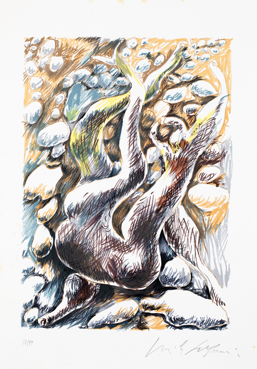 Cartella contenente dieci opere grafiche (litografie) di Pericle Fazzini, ciascuna recante firma e numerazione (Esemplari 17/99) a matita al fronte