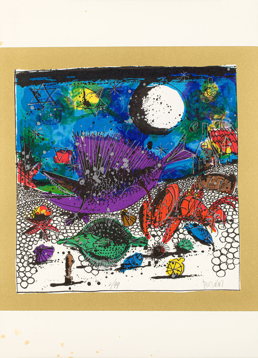 Cartella contenente dieci opere grafiche (litografie) di Gennaro Picinni, ciascuna recante firma e numerazione (Esemplari 7/99) a matita al fronte