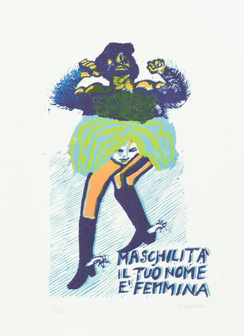 Mino Maccari Maschilità il tuo nome è femmina Linoleografia di cm. 34,8x21,9,...