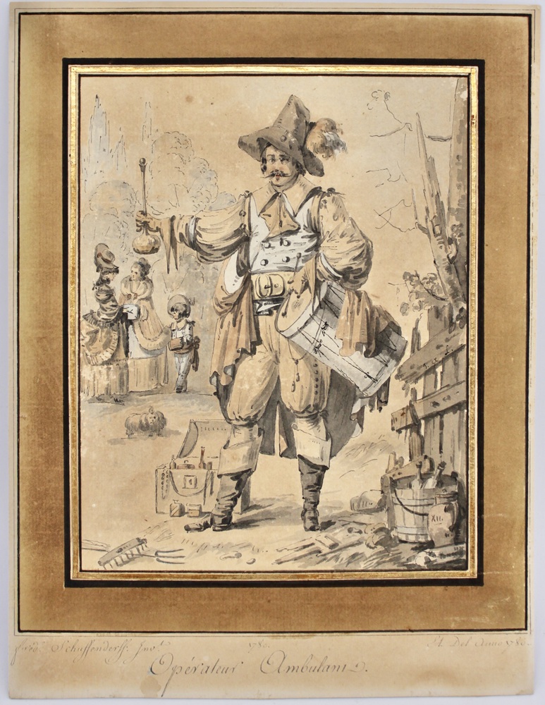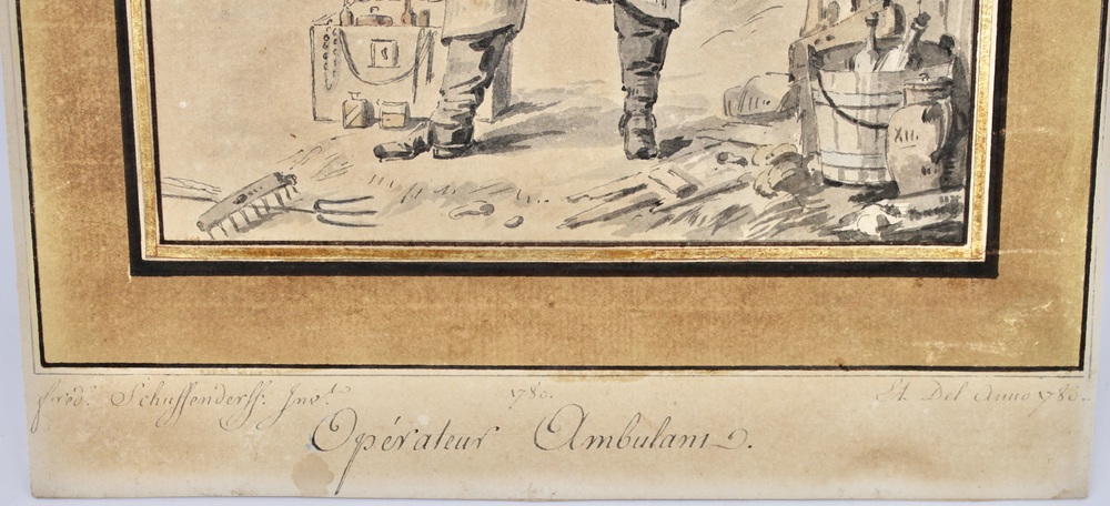 Nel margine in basso "fried. Schuffenderff Inv. 1780. E.A. Del. Anno 1780. / Opérateur Ambulanz".