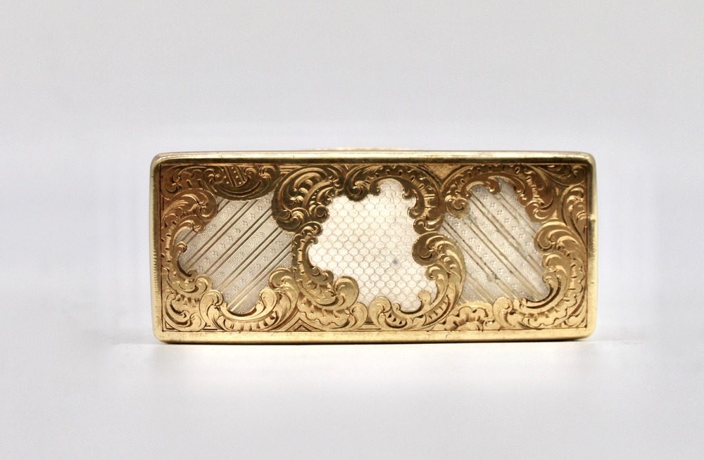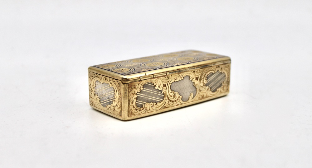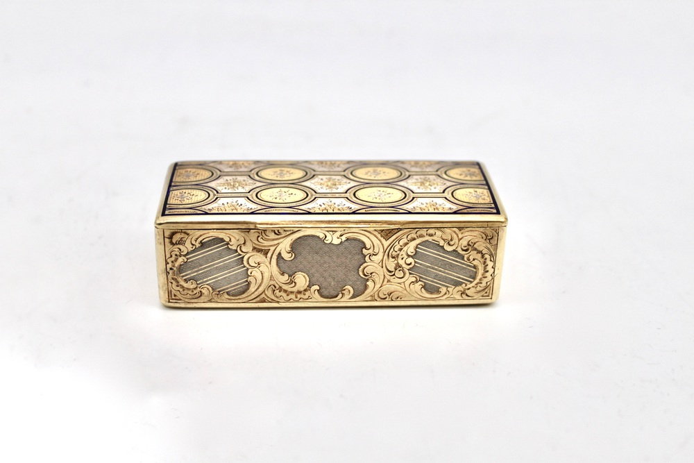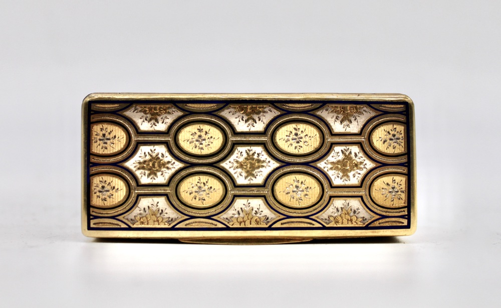 Coperchio incernierato con decoro a motivo floreale e smalti di colore blu.
