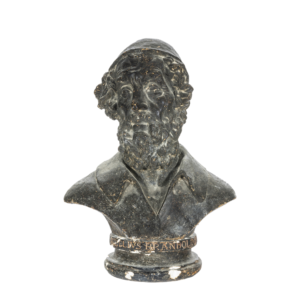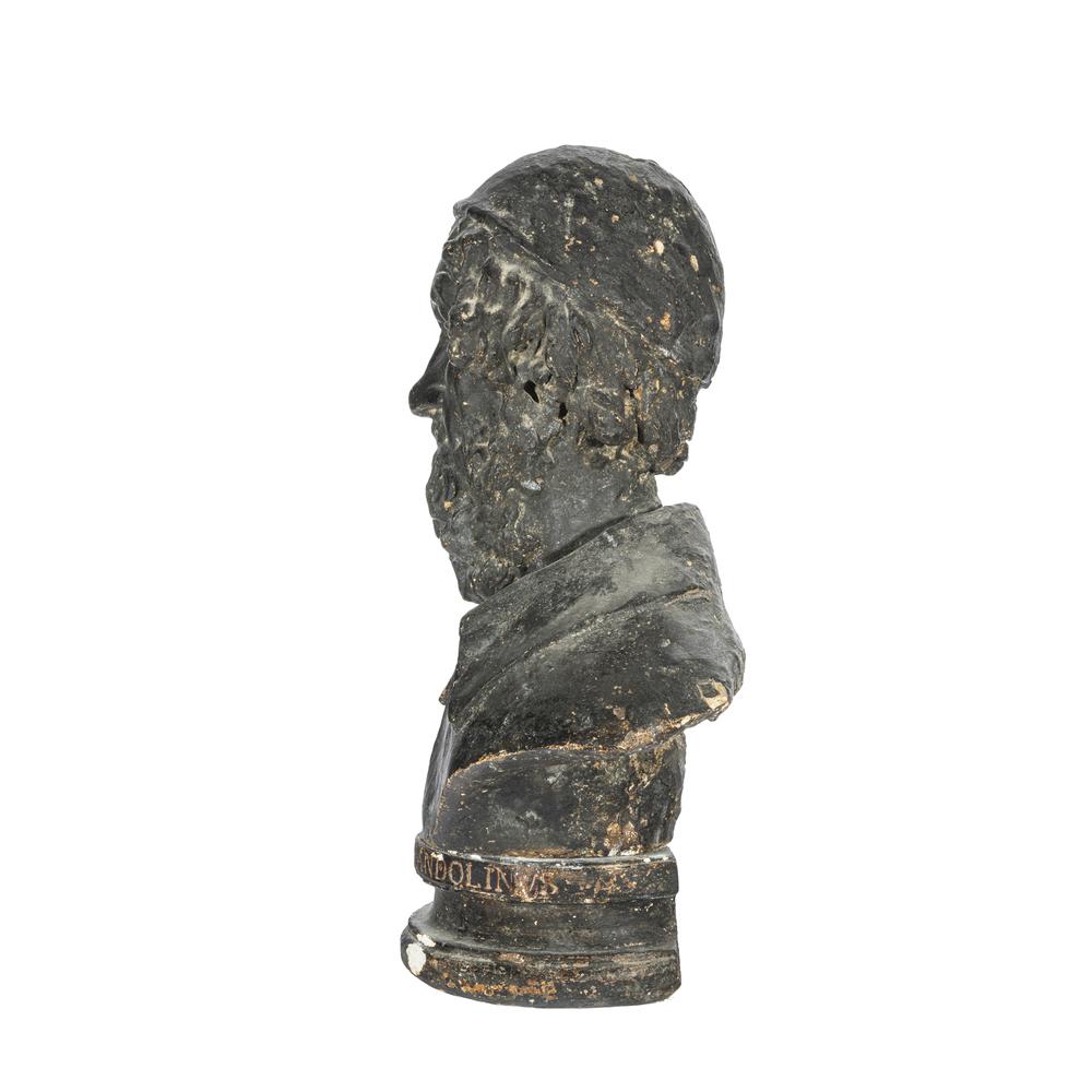 Busto in terracotta patinata raffigurante "Uomo con barba e cappello"
