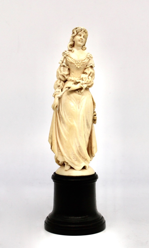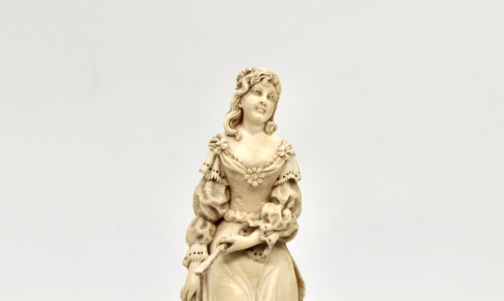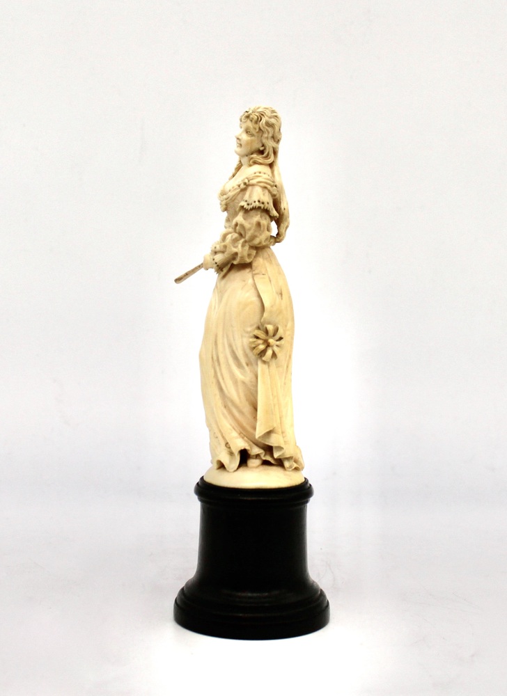 Scultura in avorio raffigurante "Nobildonna con ventaglio"