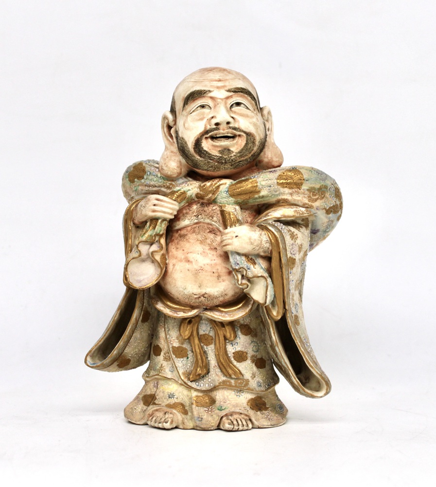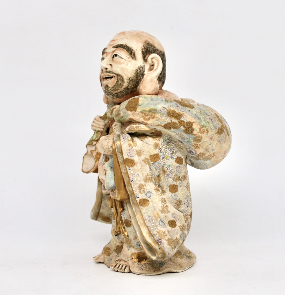Statuetta in porcellana Satsuma raffigurante vecchio viandante