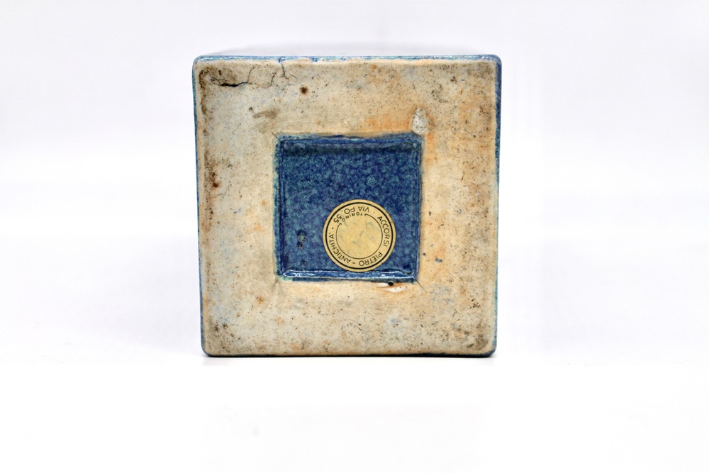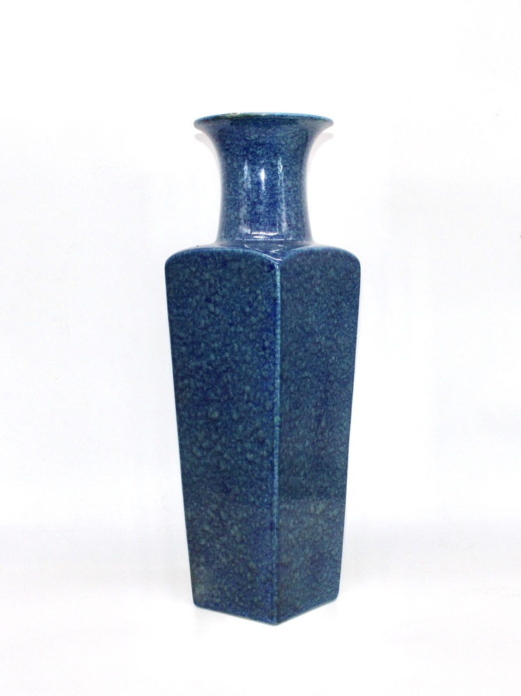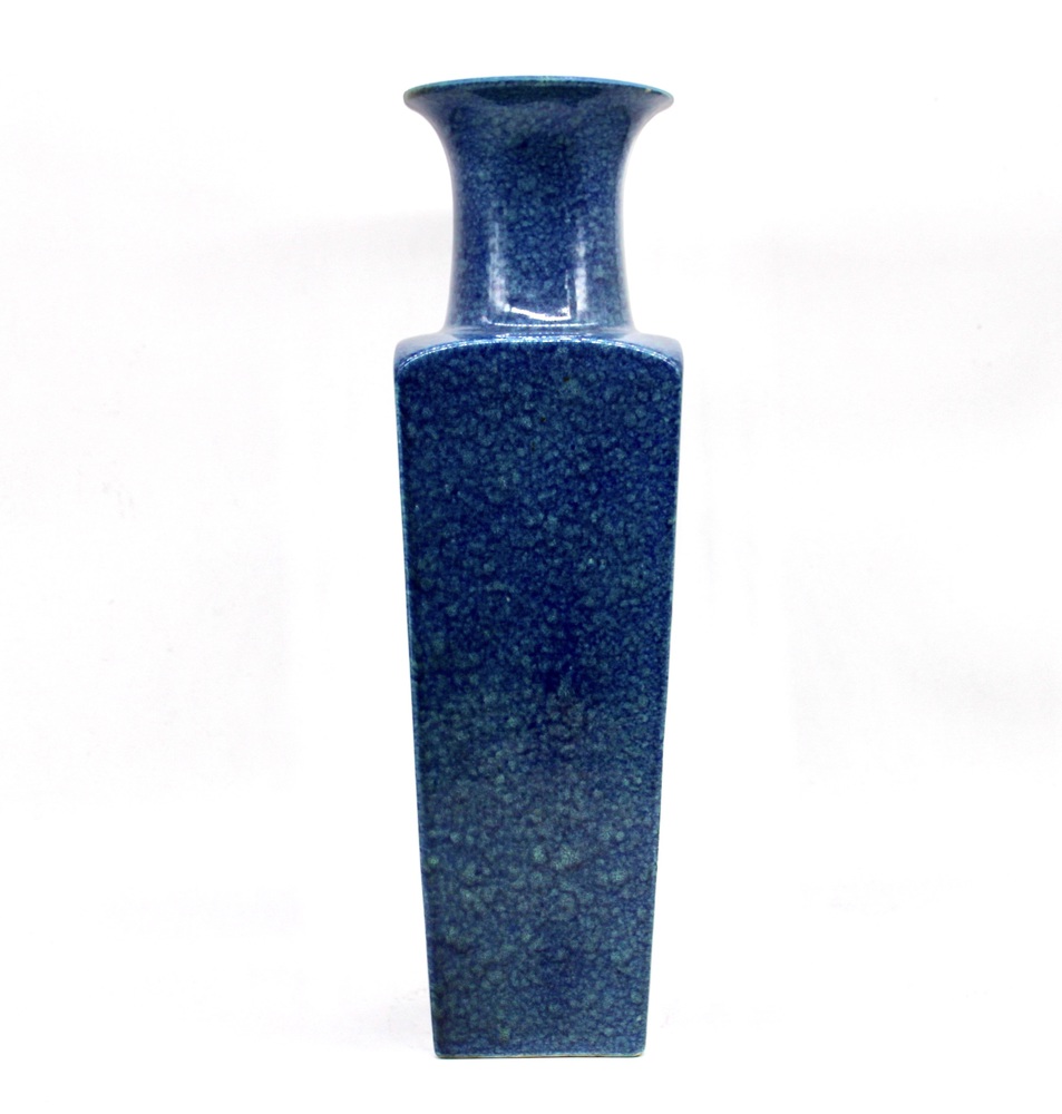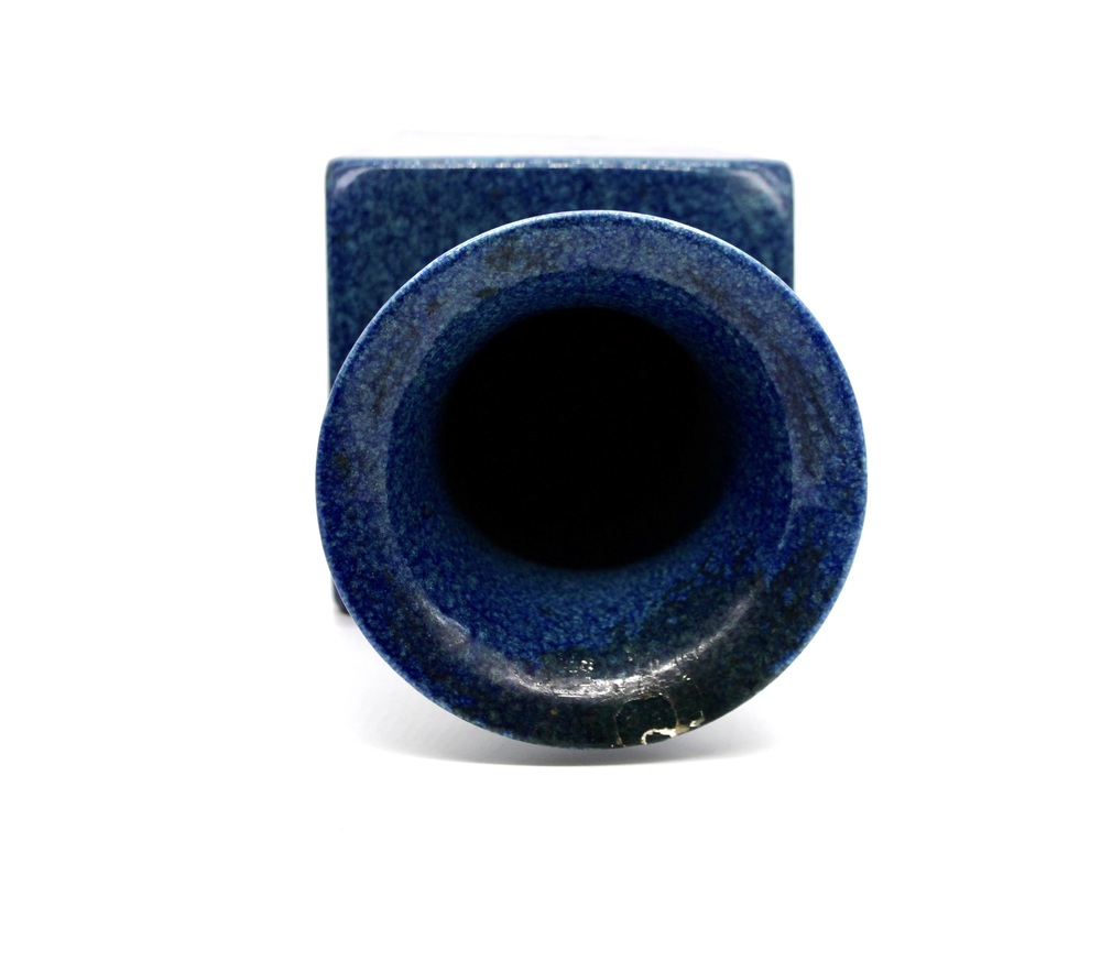 Vaso di forma rettangolare in porcellana sui toni dell'azzurro