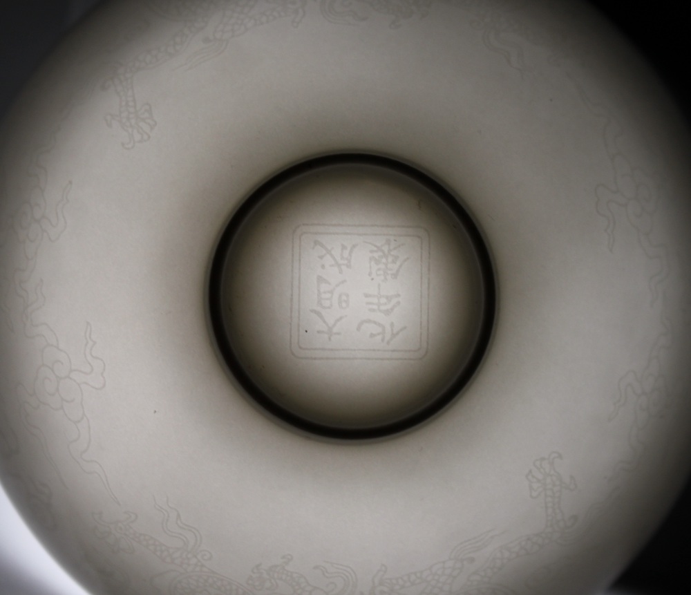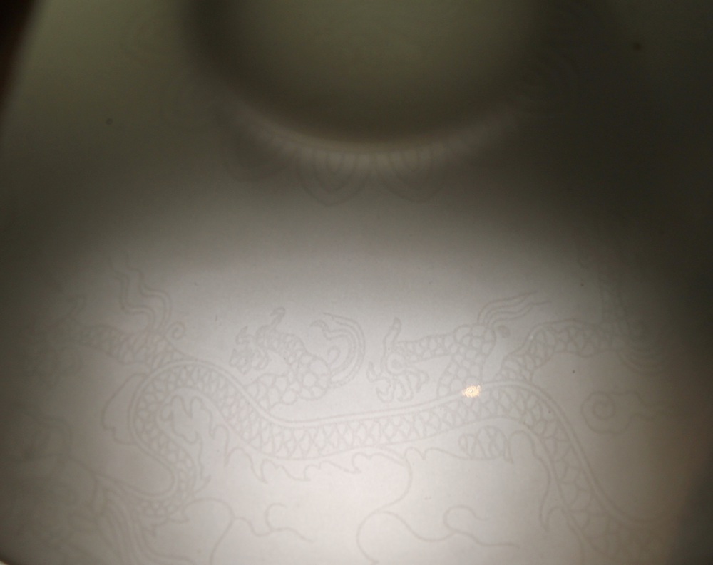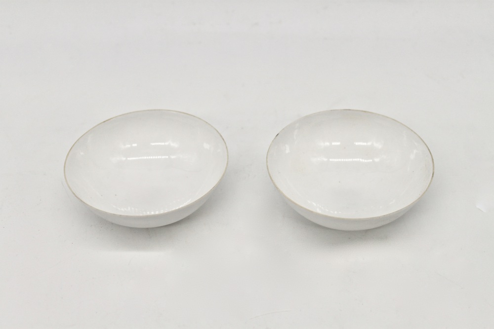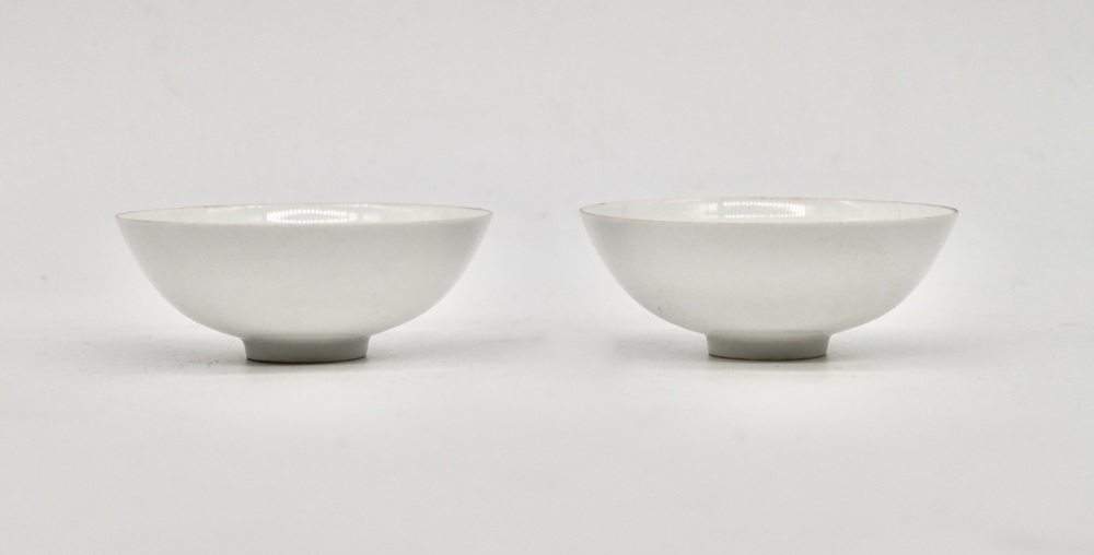 Coppia di ciotole in porcellana bianca con decori in trasparenza
