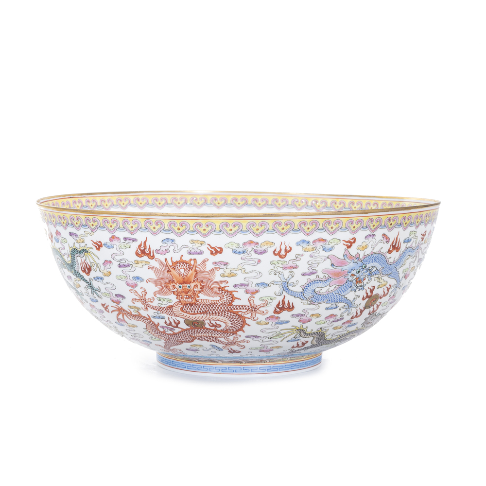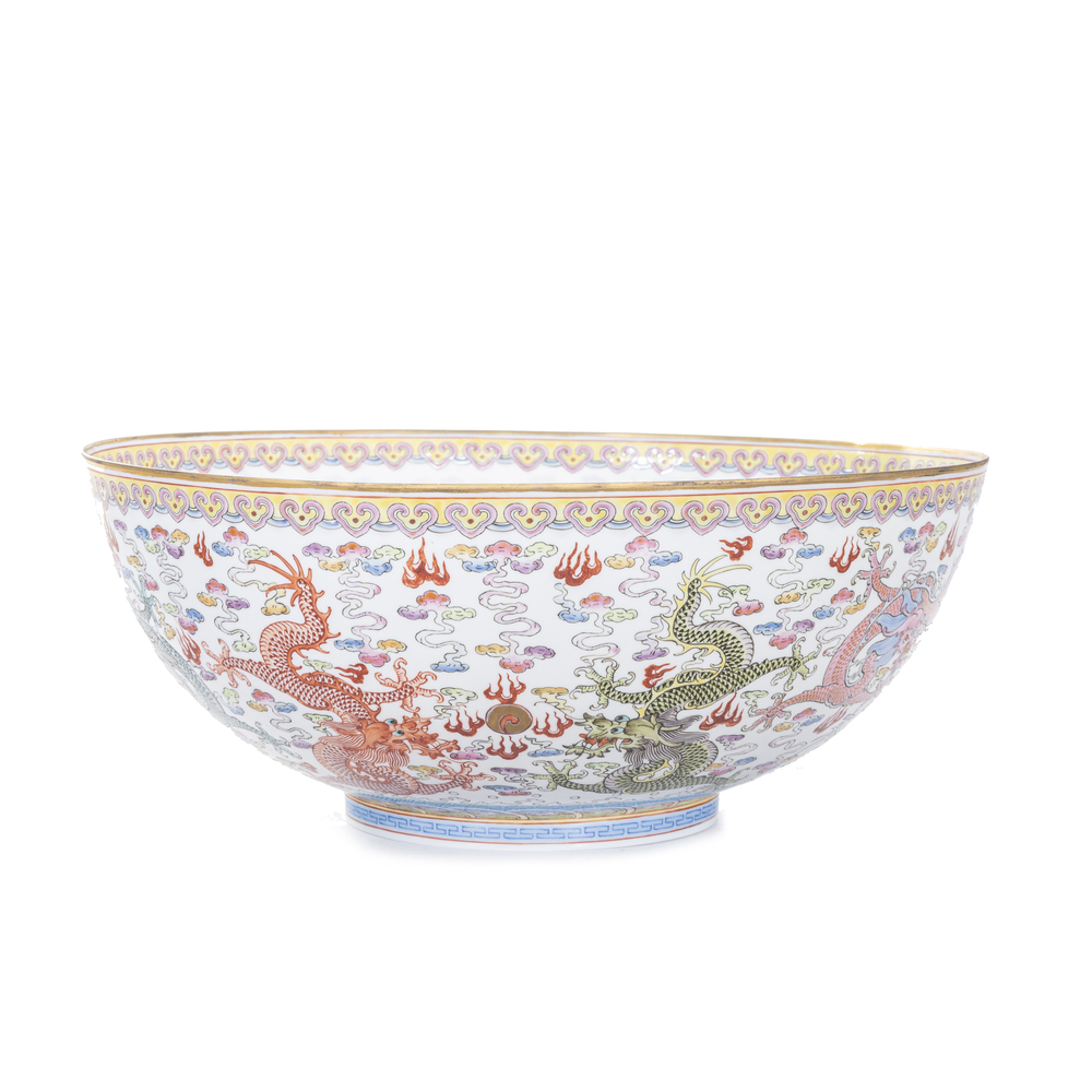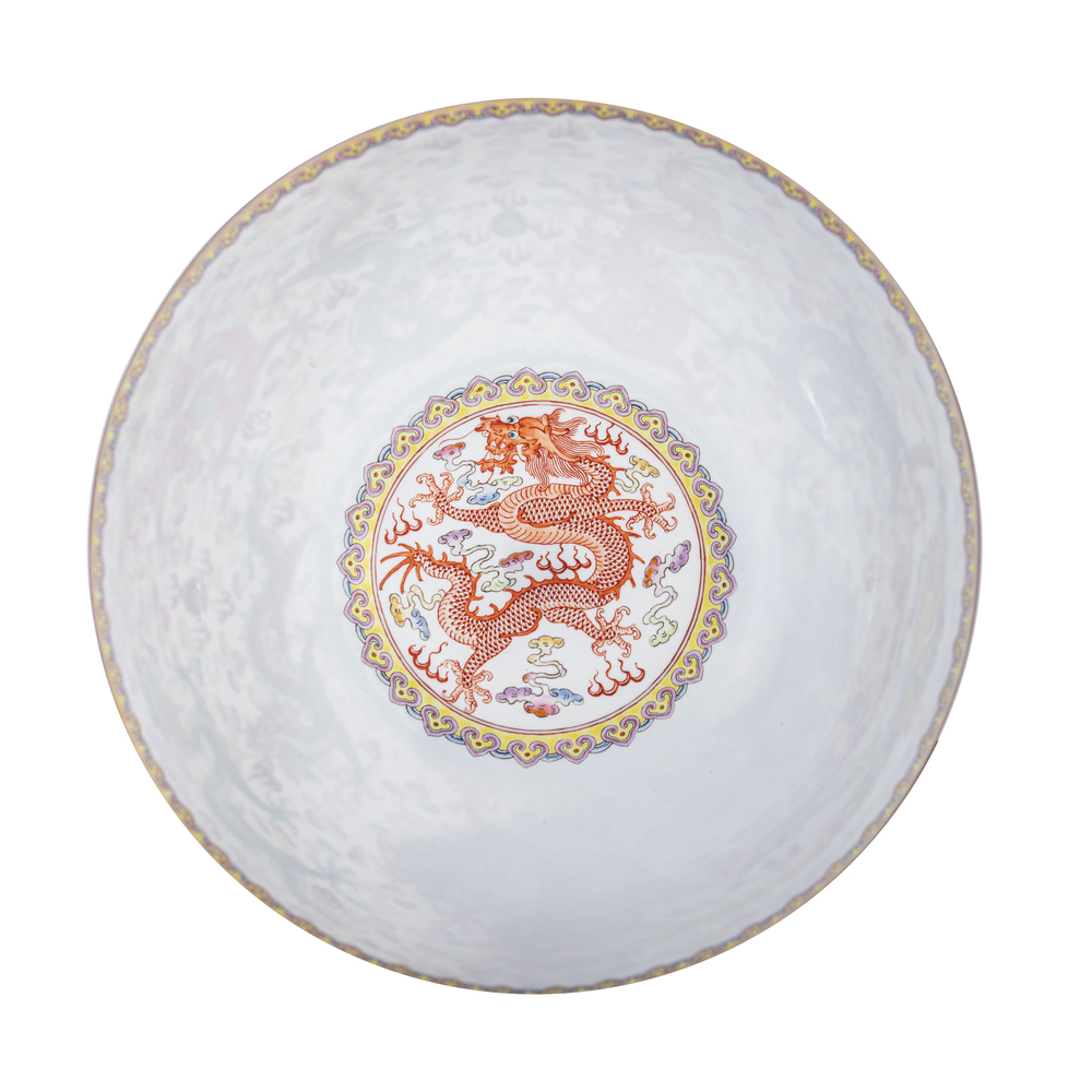 A translucent "eggshell" porcelain bowl with fine dragon decoration