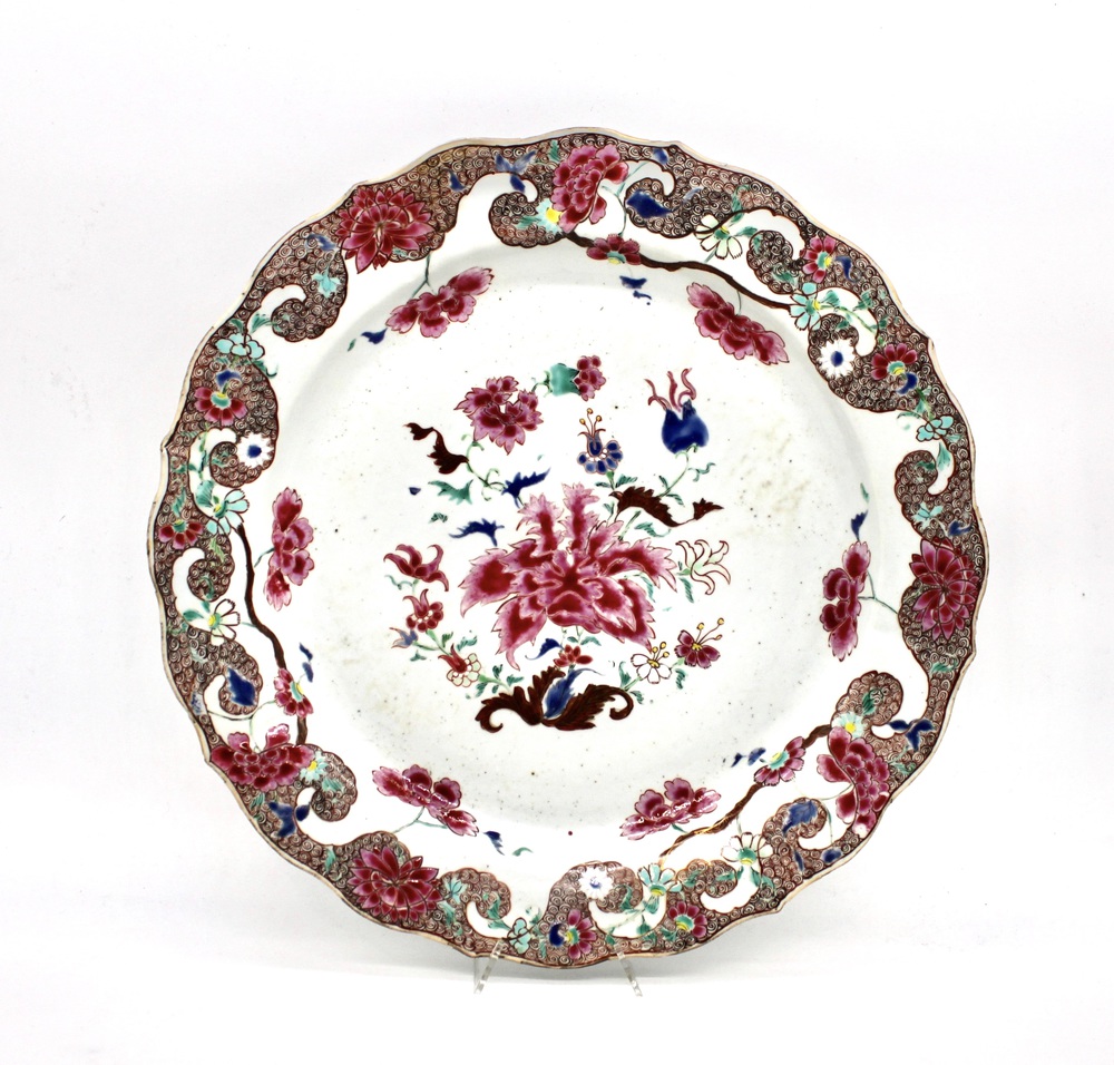A polychrome porcelain "Famille Rose" plate with floral decoration