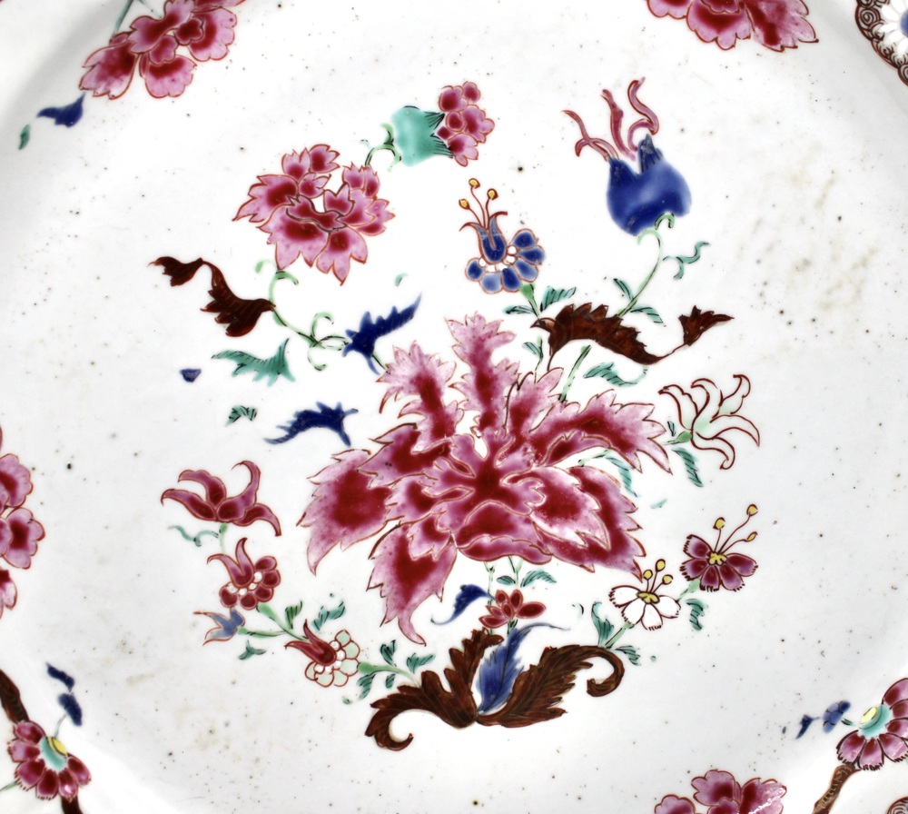 Piatto in porcellana policroma "Famiglia Rosa" a decoro floreale