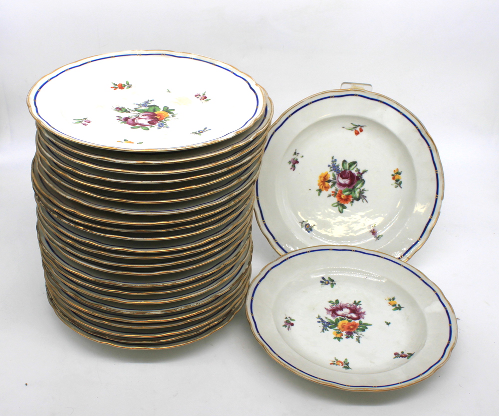 Servizio di 25 piatti in porcellana bianca con decoro floreale