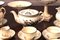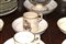 Consisting of 1 three-tier cake stand, 4 simple cake stands, 1 coffee pot, 1 teapot, 1 milk jug, 12 teacups with 19 saucers, 8 coffee cups with 10 saucers and 38 plates.