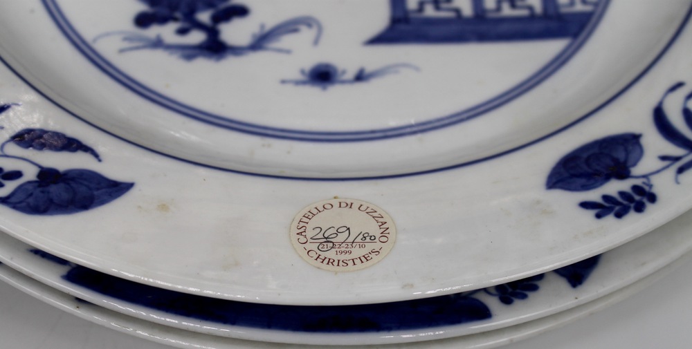 Servizio in porcellana bianca con decoro a chinoiserie sui toni del blu
