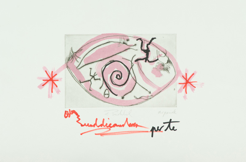 Penk A. R.- Breidenbruch Frank Senza titolo Acquaforte ritoccata a mano di cm. 14x20, su carta di cm. 35x50 Firme e dedica a persona in basso.