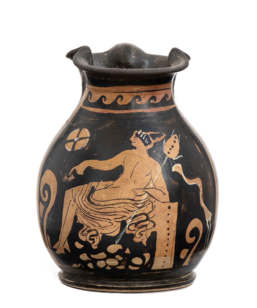 Lot 39 | APULIAN RED-FIGURE TREFOIL OINOCHOE WITH SEATED DIONYSOS 4th century BC