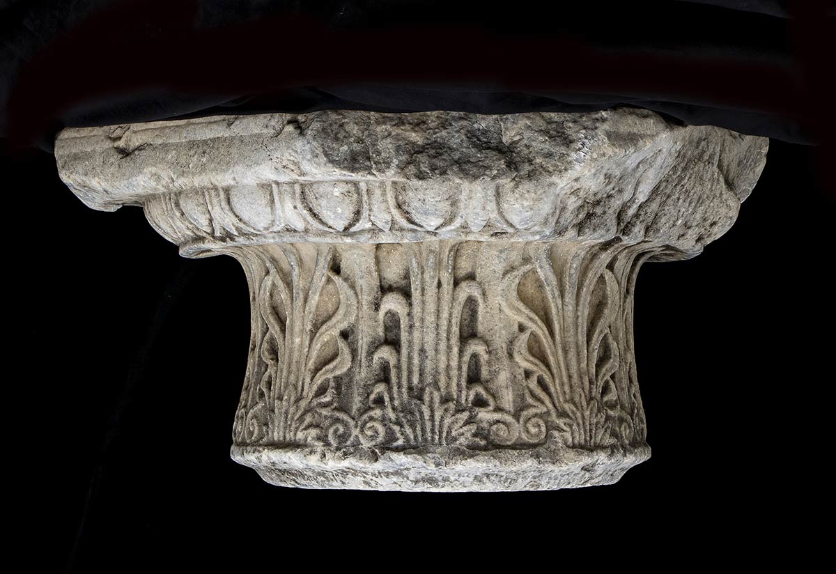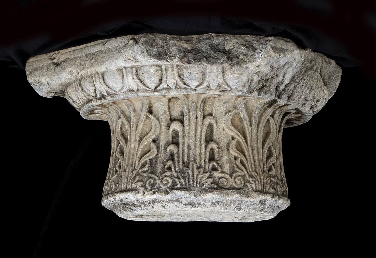 Of particular beauty and compositional complexity, this capital in Proconnesian marble presents elements dear to the stone tradition of the Augustan period - such as ionic kyma with thin shells adhering to the ovule and open and closed palmettes, alternating with water leaves - which are here, however, interpreted in a new and detailed key that suggests a reworking of the structure for a second use. Provenance: From a collector-entrepreneur of the past who lived between the US and Europe, bought in the 1980s.