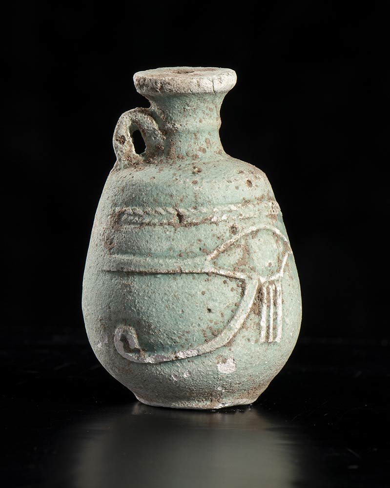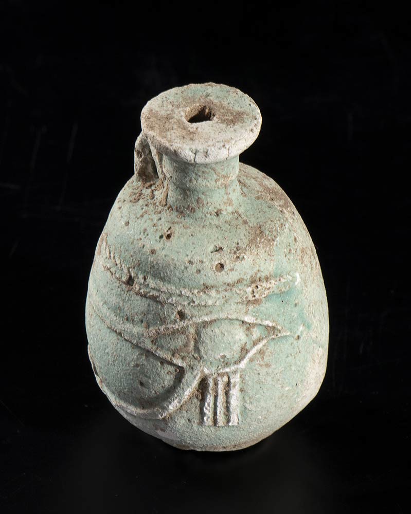 EGYPTIAN FAIANCE FLASK WITH UDJAT EYE Ptolemaic Period, ca. 332 - 30 BC
