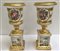 Coppia di vasi in porcellana decorata a dorature ed in policromia a fiori e pae