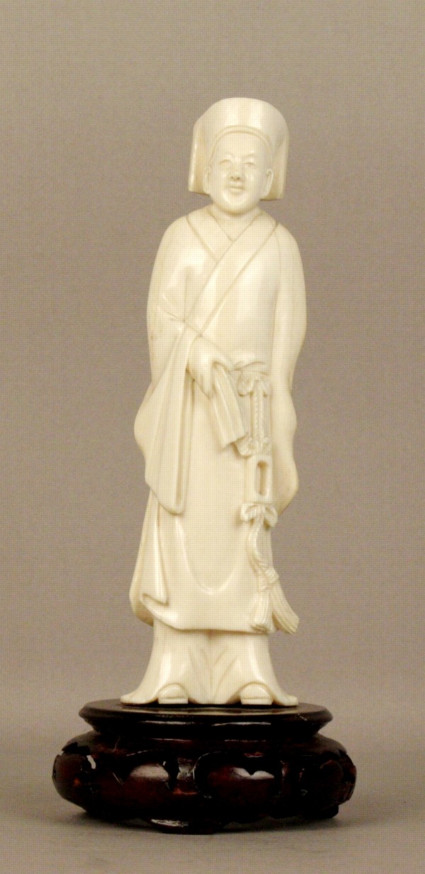 Firmato, datato. Scultura in avorio raff. ''PERSONAGGIO''. Cina. Inizi XX secolo. Mis. Alt. cm. 15 ca.