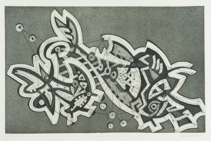 Umberto Mastroianni Oracolo Acquaforte di cm. 31x49, su carta di cm. 40x58, es. XV/XXIV Firma in basso a destra, tiratura in basso a sinistra, titolo in basso al centro.
