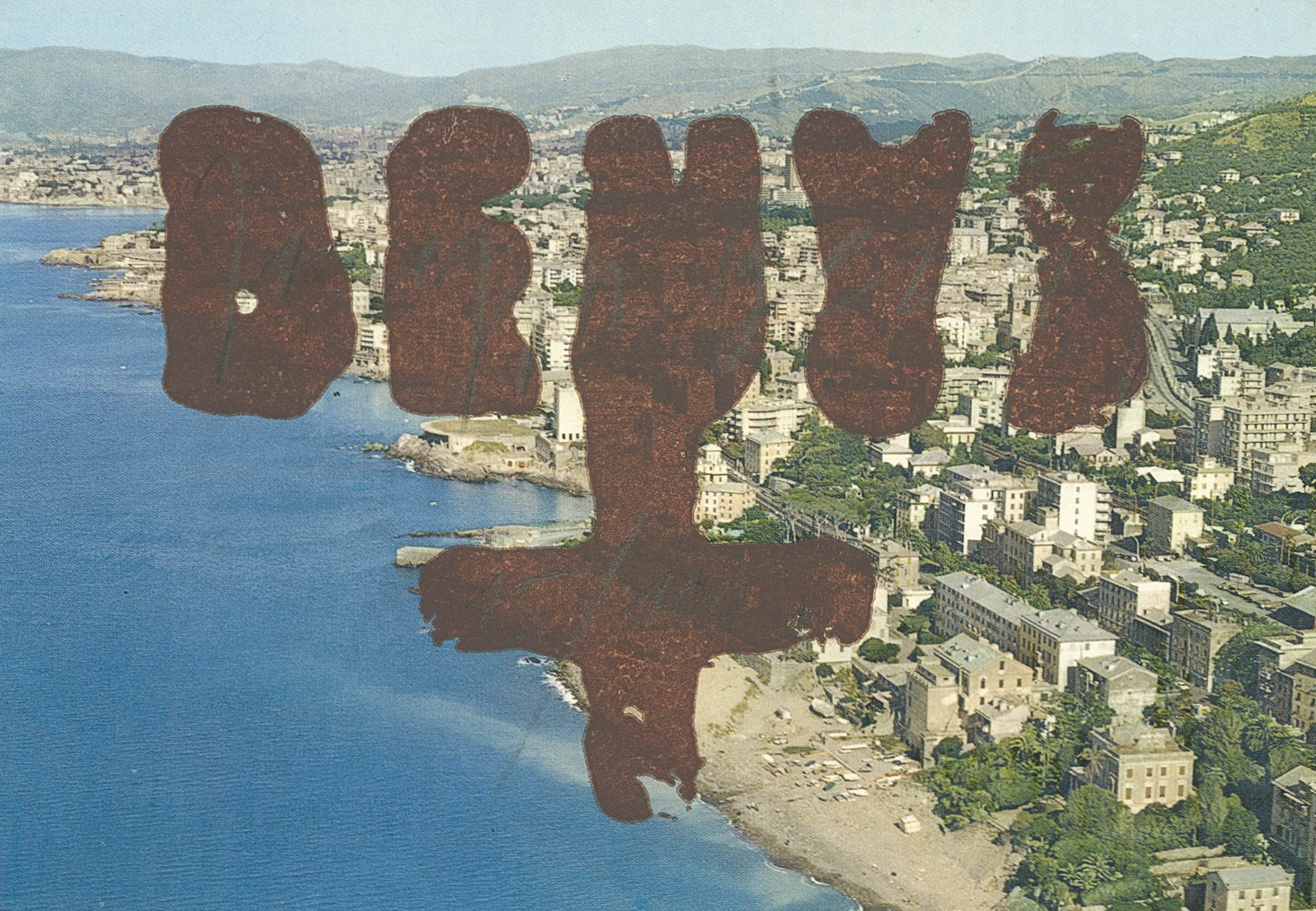 Joseph Beuys (Krefeld 1921 – Düsseldorf 1986) Genova,1976;Panorama aereo, cartolina a colori di Genova con