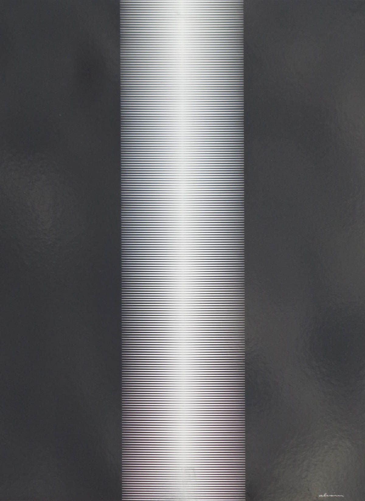Getullio Alviani (Udine 1939 – Mailand/Milano 2018) Testura in nero, 1973;Rotoflessografia su metallo, 75 x 54,5 cm,