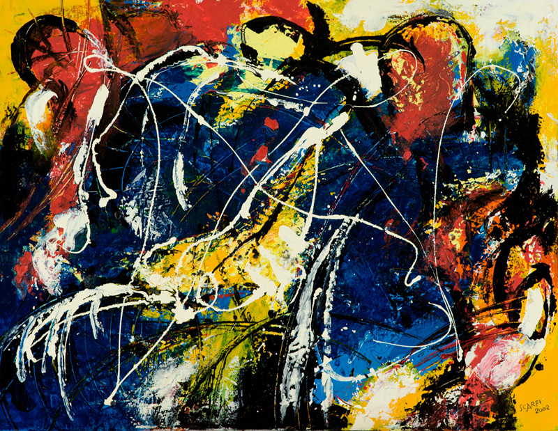 Attilio Scarfi Senza titolo, 2002 Smalti su tela, cm. 70x90 Firma e data in basso a destra. Sul verso: dedica a persona.