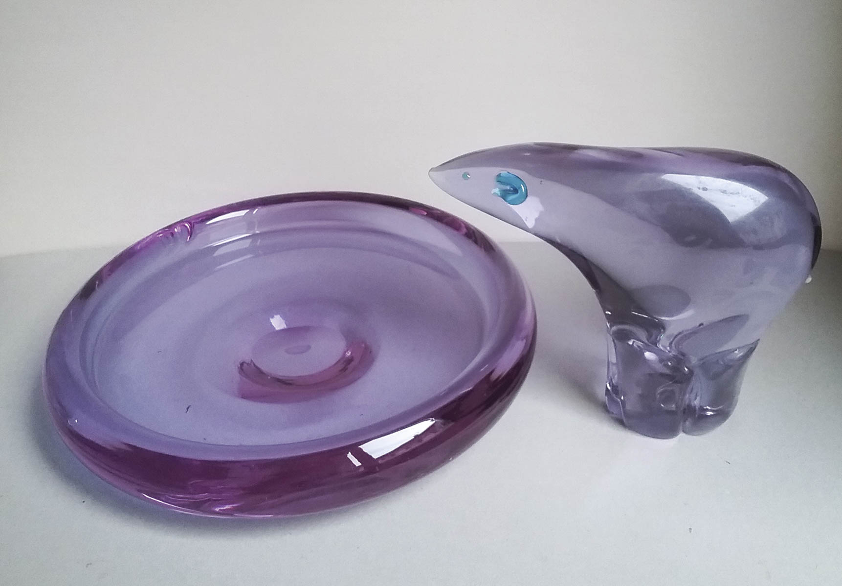 Antonio da Ros (1936) Orso e Centrotavola, Anni ‘60;In vetro sommerso al neodymium e applicazioni a caldo