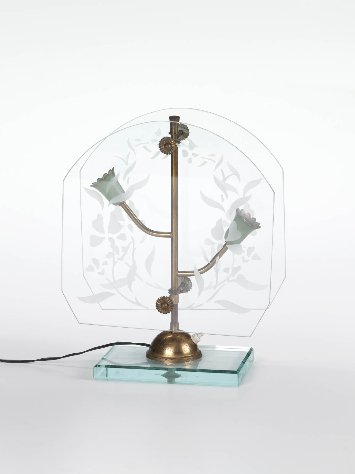 Pietro Chiesa (1892 – 1948) Lampada da tavolo;Con base in cristallo verde...