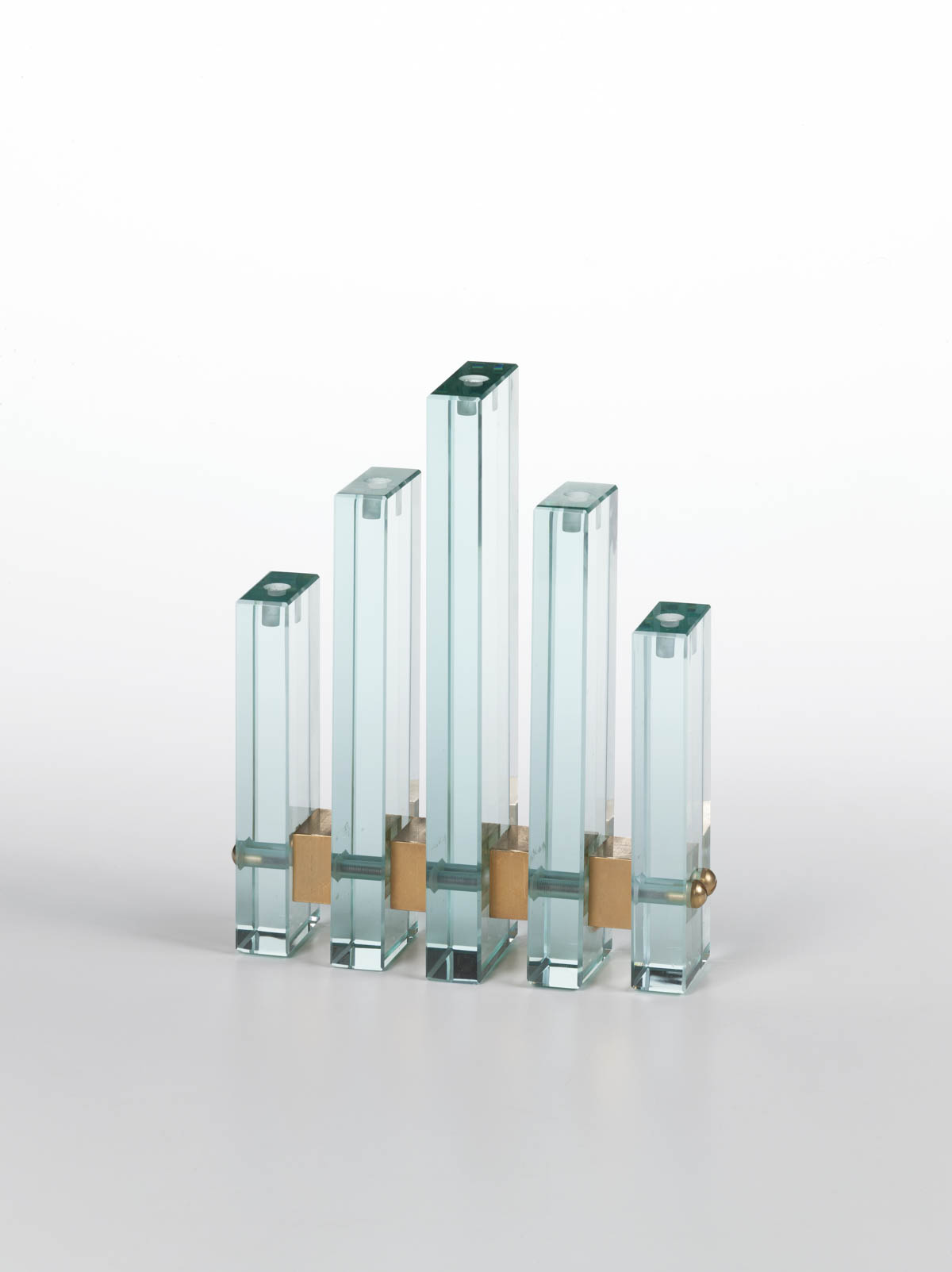 Pietro Chiesa (Mailand/Milano 1892 – Paris/Parigi 1948) Candeliere per Fontana Arte Milano, Anni ‘50;in vetro verde nilo e ottone, h. 25,5 x 20 cm