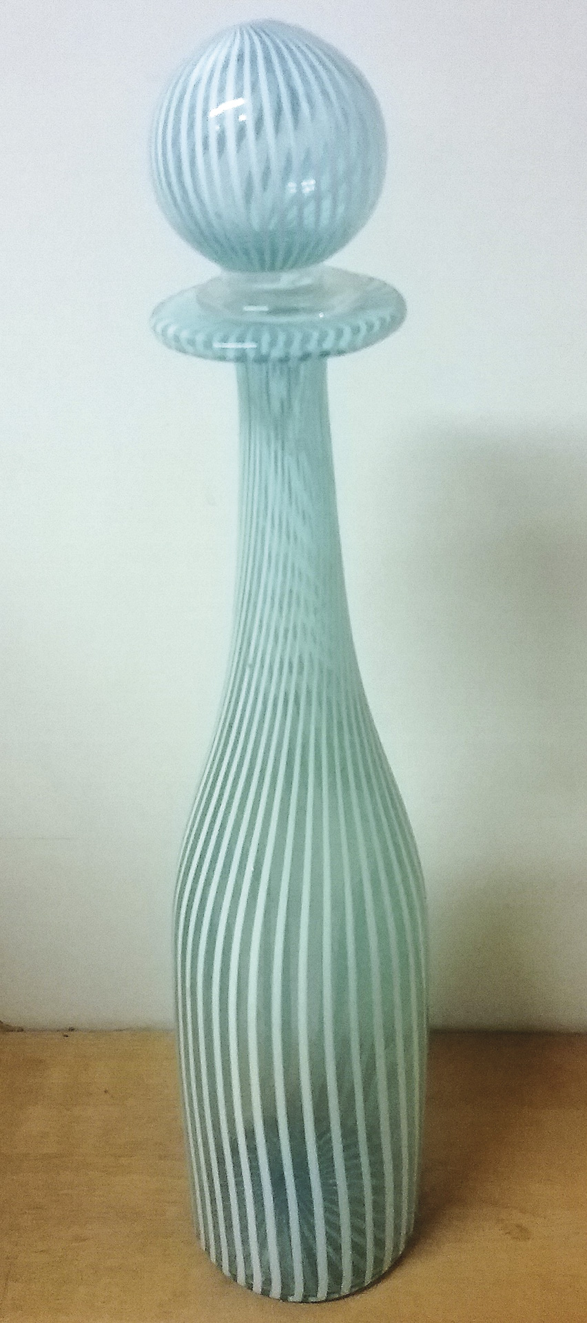 Fratelli Toso - Murano Bottiglia, Anni ‘60;In vetro acquamarina e filigrana in vetro lattimo, h. 35 cm,