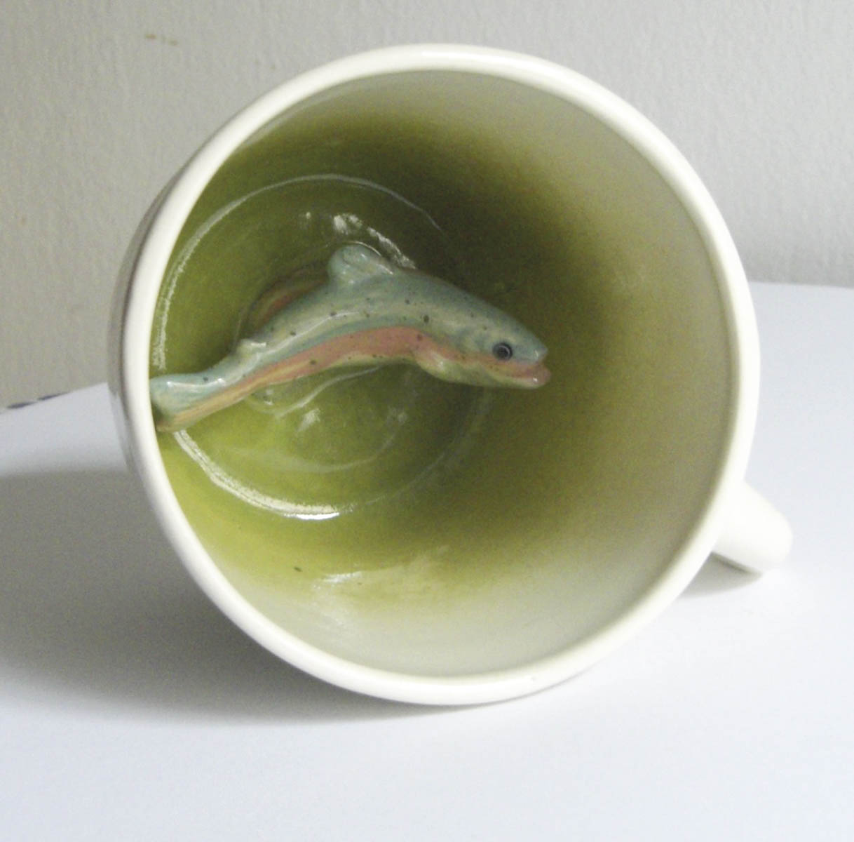 Felice Tosalli (zugeschrieben/attribuito) (1883 – 1958) Rara Tazza con salmone;In ceramica a smalti policroma per la manifattura Lenci, h. 9 x 12,5 cm, il timbro