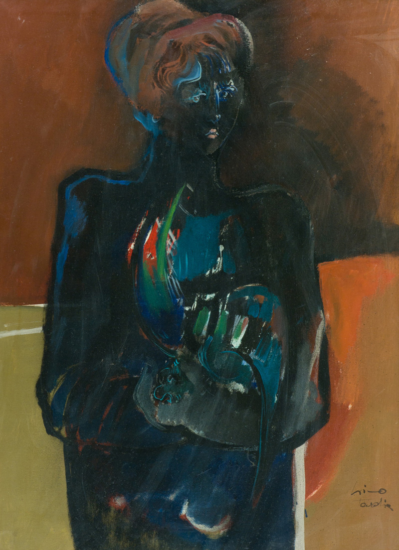 Lino Tardia Figura Olio su tela, cm. 80x59 Firmato in basso a destra.