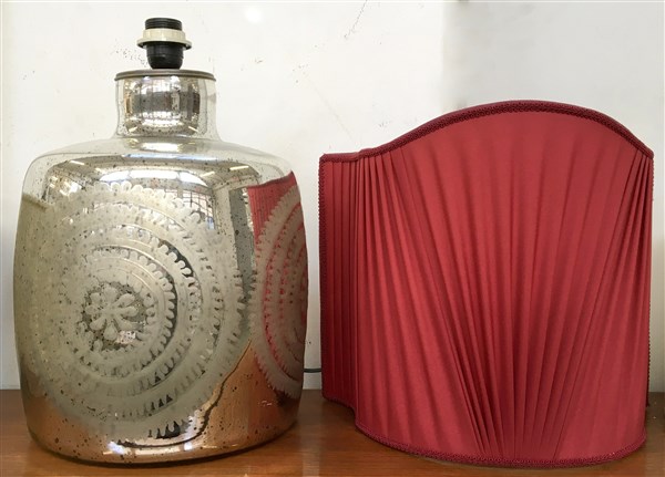 Lotto di due lampade da tavolo in vetro e metallo inciso, forme, decoro e misur