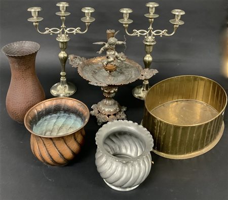 Cartone contenente oggetti di diversa forma ed uso in rame, peltro e metallo (difetti e mancanze)
