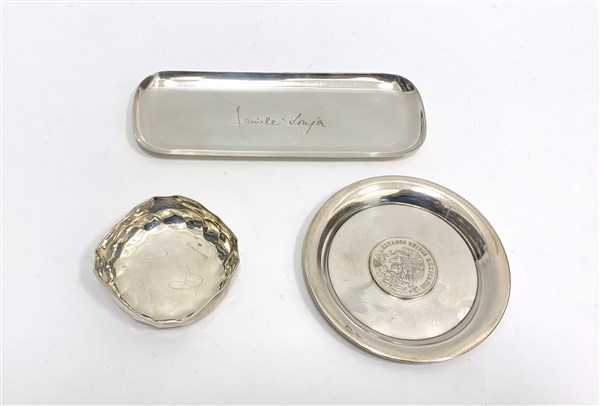 Lotto composto da un vassoietto, una ciotola ed un piattino in argento (gr 180) (difetti)
