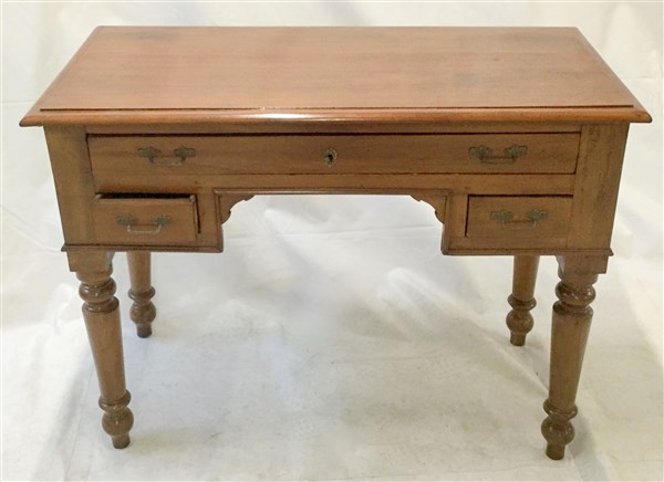 Piccolo scrittoio a tre cassetti, gambe tornite (cm 105x79x53) (difetti)