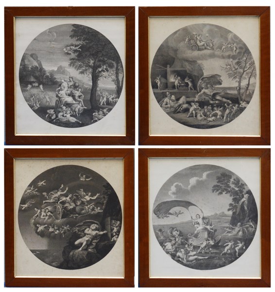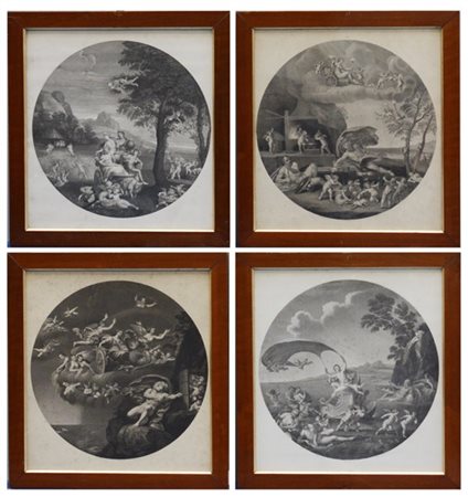 Gruppo di quattro incisioni tonde raffiguranti divinità, da dipinti di Albani (d. cm 28,5) in cornici (difetti)