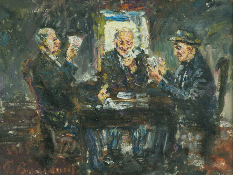 Guido Borgianni Giocatori di carte Olio su cartone telato, cm. 30x40 Firmato in basso a sinistra.