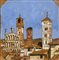 Massimo Lomi Lucca storica, 2012 Tempera su tavola, cm. 31x30,5, eseguito...