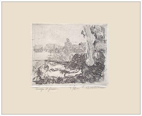 LUIGI BARTOLINI (1892 – 1963) Lungo il fiume Acquaforte es.3/4. Firma in b. a...