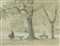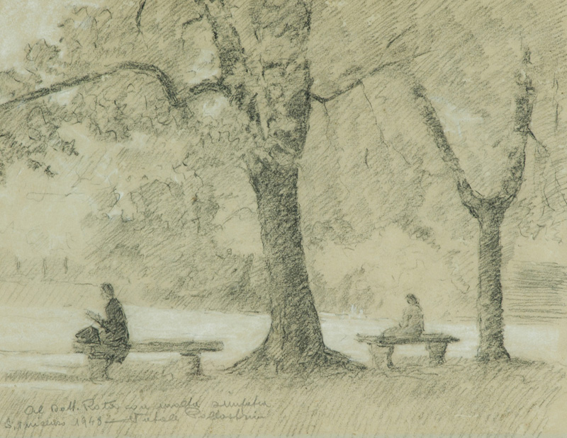 Natale Pollastrini Paesaggio con figure, 1948 Tecnica mista su carta, cm. 29x38 Firma e data in basso a sinistra.