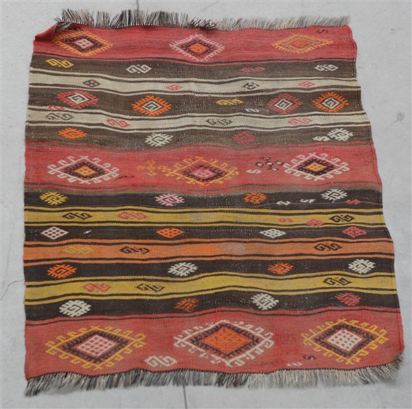 Tappeto Djia’-Djim, Anatolia, secolo XX. Decoro a fasce nei colori del marrone,