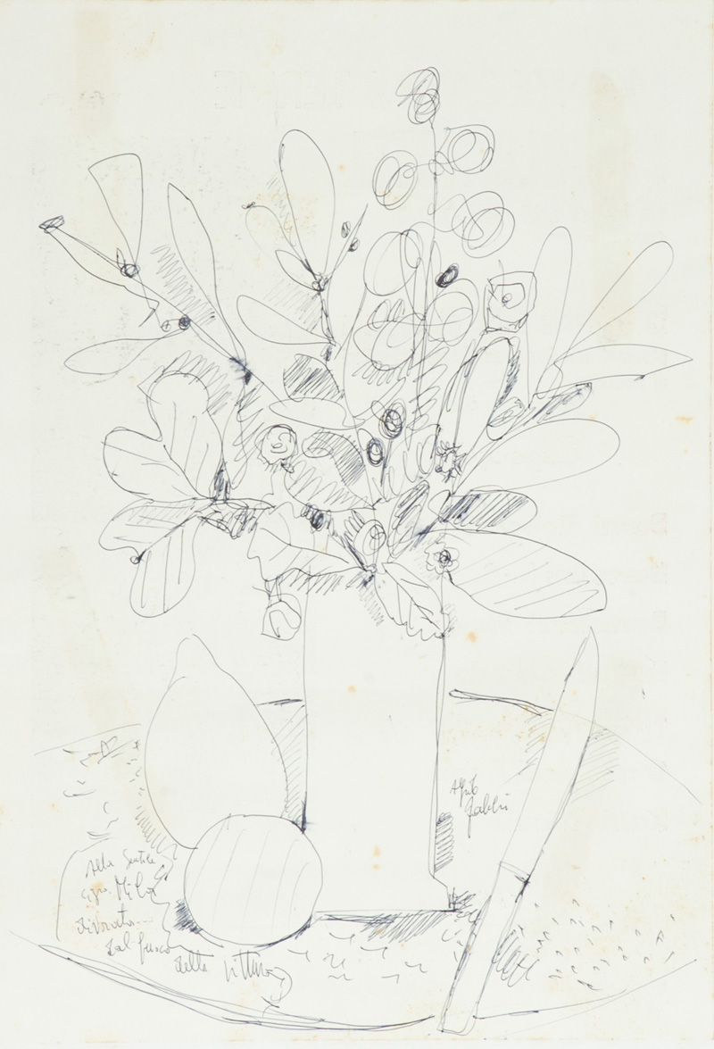 Alfredo Fabbri Vaso di fiori Biro su carta, cm. 47,5x33,5 La carta presenta lievi fioriture. Firma in basso a destra, dedica a persona in basso a sinistra.