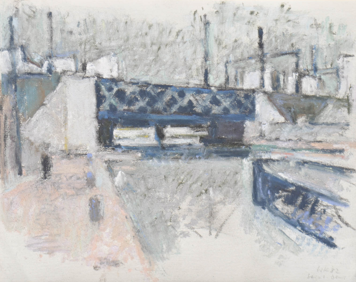 Wilfried Kirschl (Wörgl 1930 – Innsbruck 2010) Ponte ferroviario a Saint-Denis, 1982;Pastello, 21,5 x 27 cm, in cornice