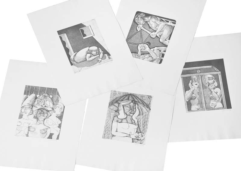 Luigi Guerricchio Le donne Cartella contenente cinque acqueforti di cm. 32,5x25 c.a., su carta di cm. 67x48,5, es. 1/90 La cartella è introdotta da una presentazione di Dino Carlesi. Firmate in basso a destra e tirate in basso a sinistra.