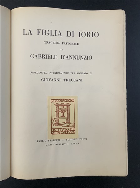 D’ANNUNZIO, Gabriele - La figlia di Iorio. Milano: Bestetti, 1938. Folio, con r