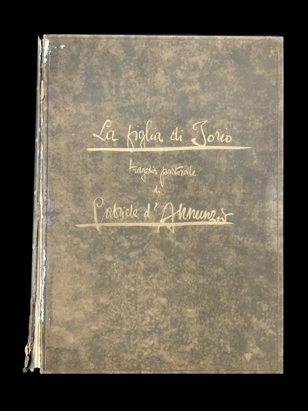 D’ANNUNZIO, Gabriele - La figlia di Iorio. Milano: Bestetti, 1938. Folio, con riproduzione di autografi, esemplare 417 da un'edizione di 750 (lievi difetti). Piena pergamena editoriale stampata in oro, entro cofanetto di cartone decorato (difetti più marcati alle giunture). [1]