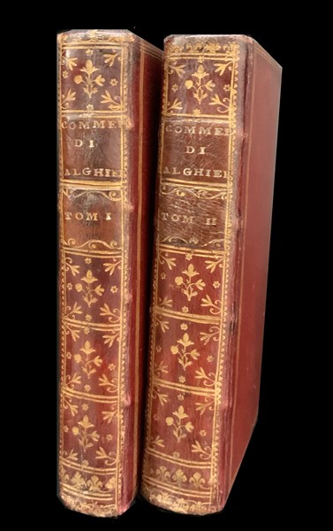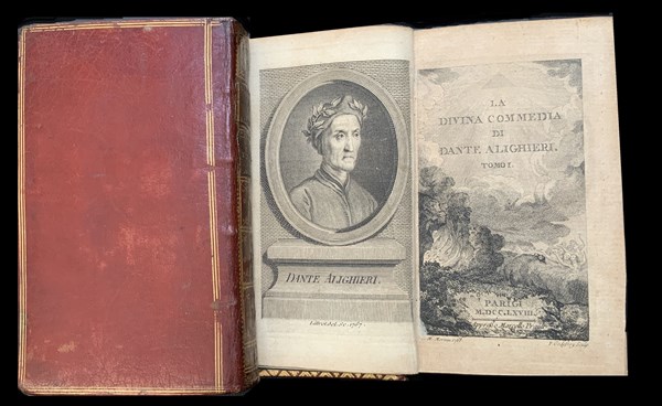DANTE ALIGHIERI. La Divina Commedia. Parigi: 1768. 12mo, 2 voll (di 3). ritratto di Dante in antiporta al primo volume e tavola incisa al secondo volume. Bella legatura in marocchino rosso con titoli e decori in oro al dorso. Non collazionato e difetti da esaminare. [2]