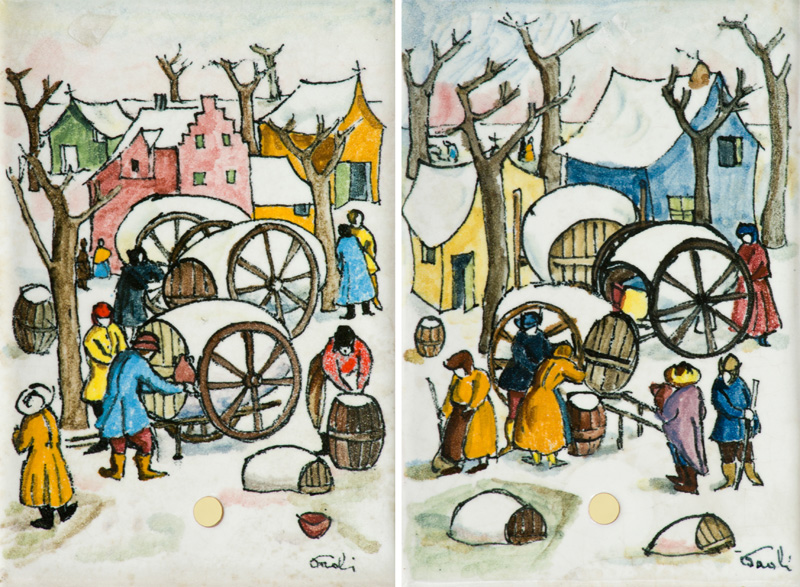 Bruno Paoli Lotto unico di due Opere - "Paesaggio con figure", Terracotta dipinta, cm. 23,5x16, firmato in basso a destra; - "Paesaggio con figure", Terracotta dipinta, cm. 23,5x16, firmato in basso a destra.