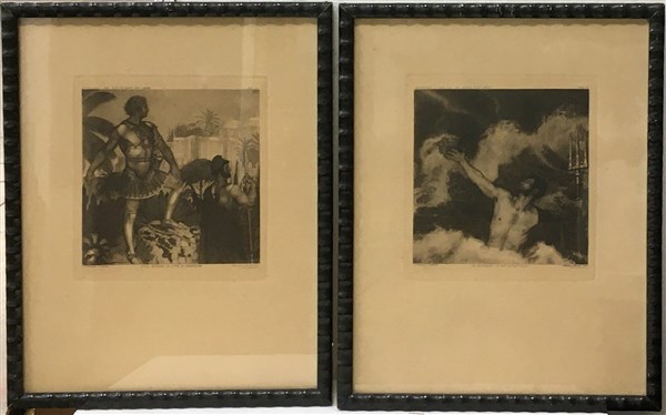 Calcografia Cavadini "Scene mitologiche" 1925 gruppo di quattro acquaforti (cm 35x28 il folio), firmate in basso a sinistra, in cornici